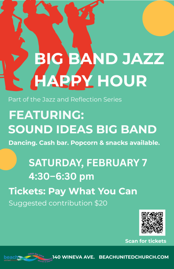 Join us for a lively afternoon of big band jazz, dancing, and refreshments at Beach United Church.